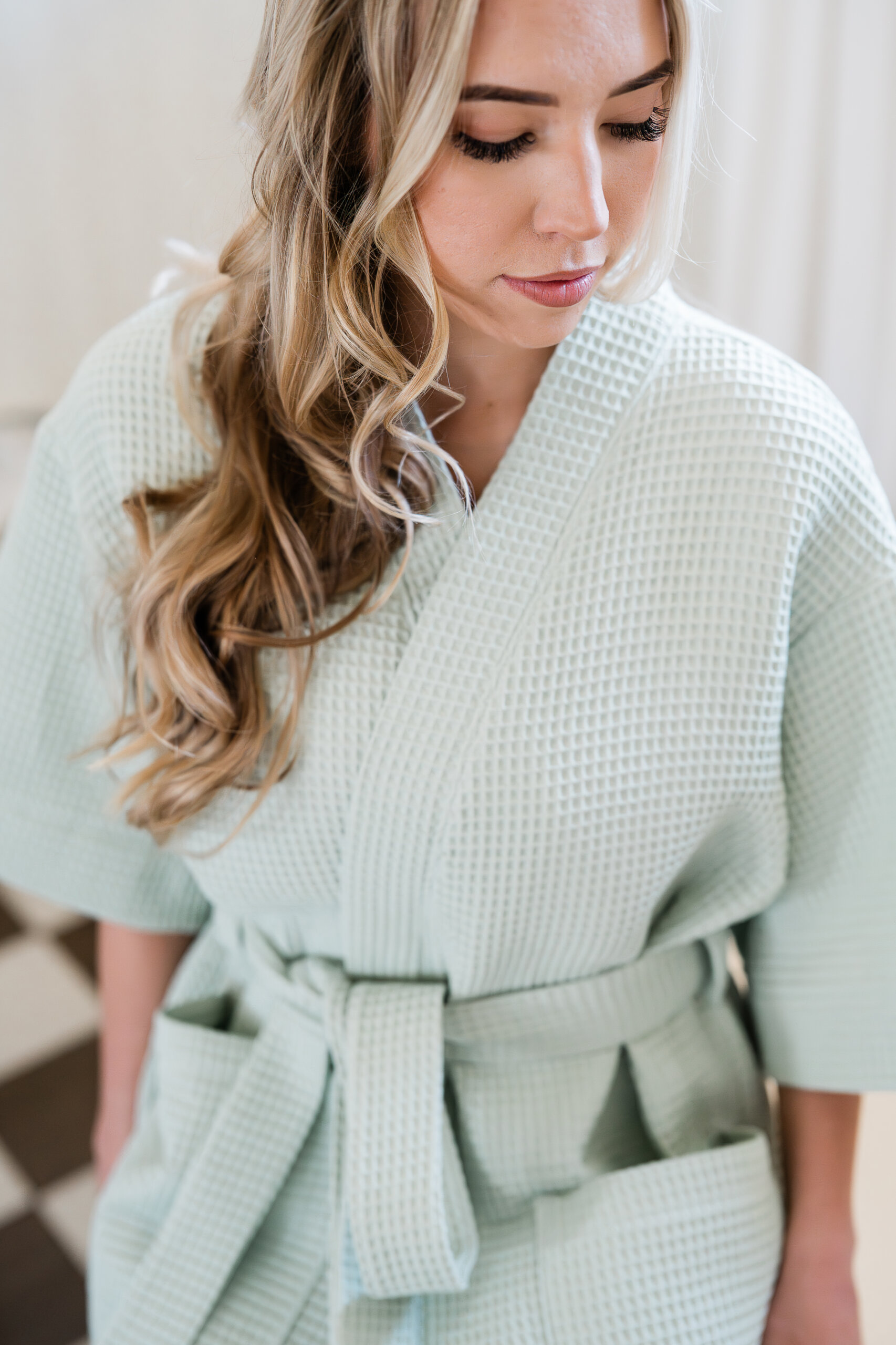Made from 100% cotton OEKO-TEX waffle fabric, this kimono is ideal for wearing at home or at the spa.