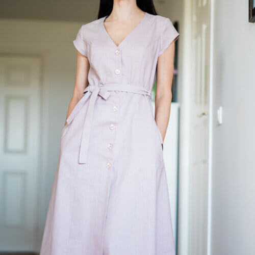 Muslin fabric, or cotton crepe, is light and breathable, perfect for summer. The timeless cut of the dress is suitable for wearing on a hot summer day or at an evening event.