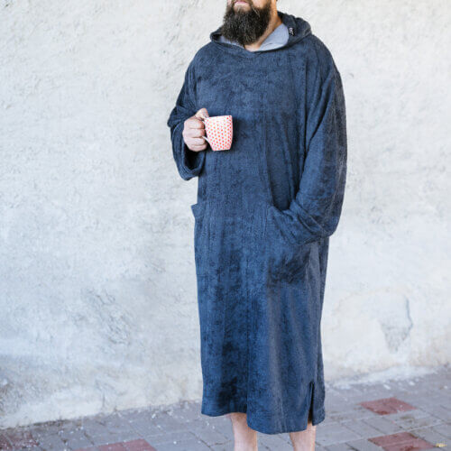 Bambusfrotee on hingav ja niiskust imav. Saunasärgil on pikad varrukad, kapuuts ning mugavad taskud.