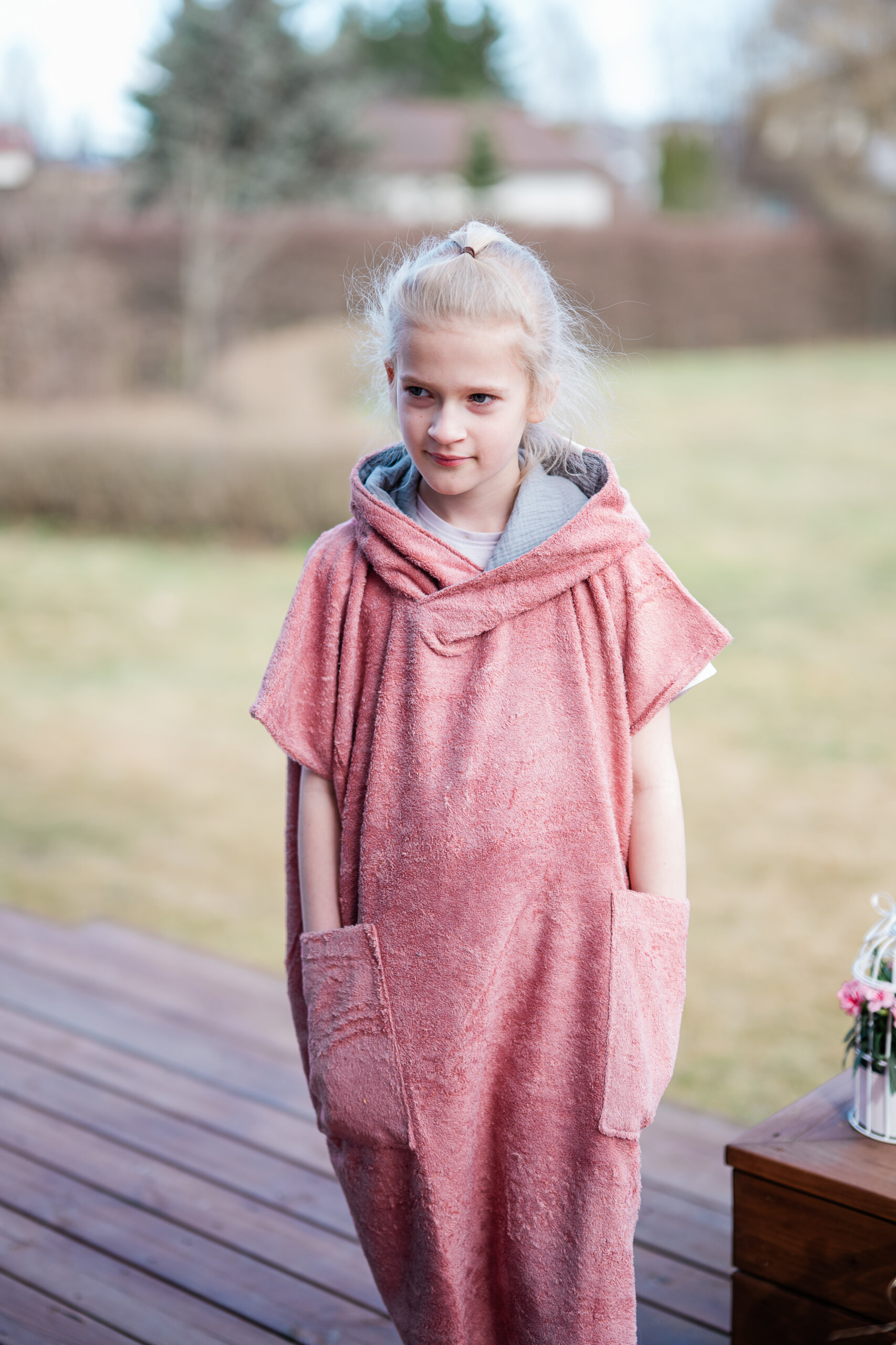 Poncho on lapsele mugav, kuna püsib kenasti seljas ning tänu avarale lõikele on lapsel mugav liikuda.