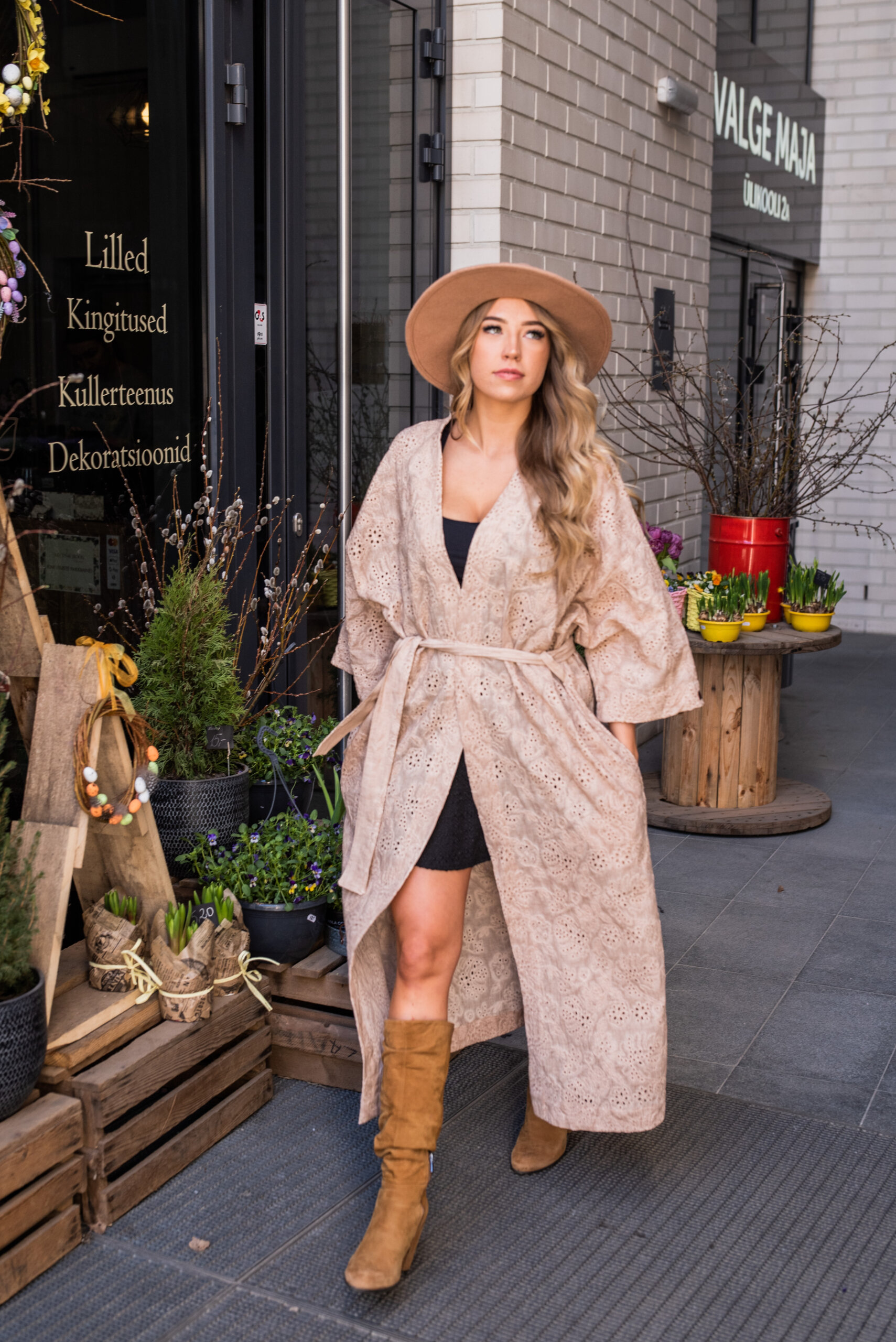 100% puuvillasest OEKO-TEX broderiikangast kimono-hõlst on klassikalise lõikega, kaunis ja naiselik täiendus suvisesse garderoobi.