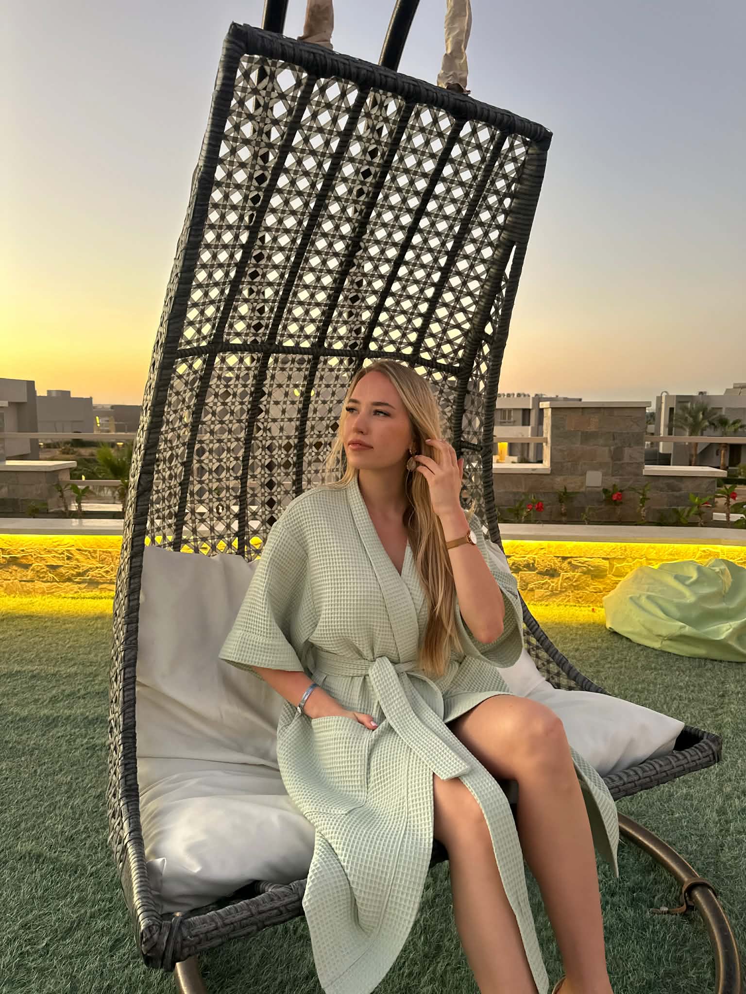 100% puuvillasest OEKO-TEX vahvelkangast kimono on ideaalne kanda nii kodus kui spaas.